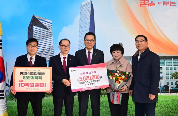 이어 9일에는 인천연수구새마을회가 5백만 원의 장학금을 기탁하며, 지금까지 총 2천만 원을 기부하는 등 지역 인재 육성을 위한 장학사업에 꾸준히 동참해 왔다.