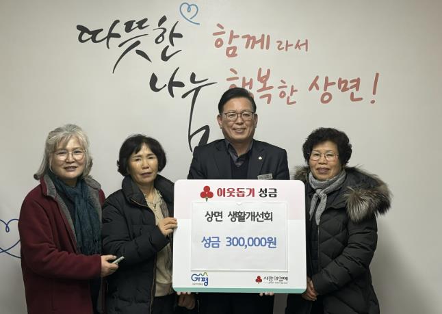 서태원 상면장은 “명절마다 이웃을 생각하며 따뜻한 나눔을 실천해 주시는 상면 생활개선회 회원 여러분께 진심으로 감사드린다”며 “기탁해 주신 성금은 도움이 꼭 필요한 이웃들에게 소중히 전달하겠다”고 말했다.