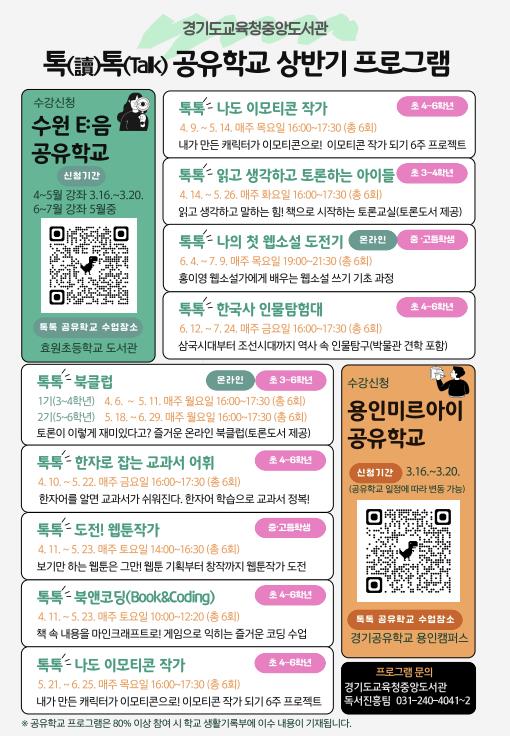 [세계로컬타임즈] 경기도교육청중앙도서관이 학생들의 창의적 사고력과 진로설계 역량을 강화하기 위해 4월부터 7월까지 녪년 상반기 톡(讀)톡(talk) 공유학교’를 운영한다.