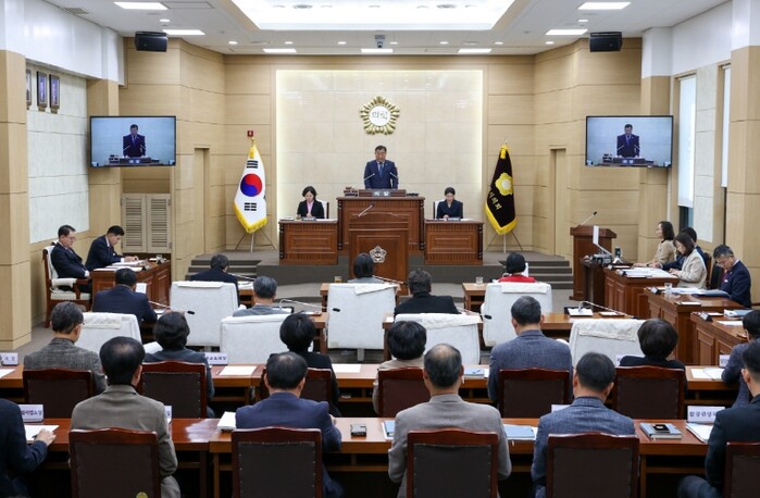 김범규 의장은 개회사를 통해 “시민 삶의 질 향상과 지역 현안 해결을 위해 함께 달려온 제6대 계룡시의회가 마지막 정례회를 맞았다”며,“이번 정례회는 내년을 준비하고 향후 방향을 설계해야 하는 중요한 시기로, 효율적인 재정 운영을 통해 현안 사업이 올바르게 추진될 수 있도록 동료 의원님들의 심도 있는 검토를 부탁드린다.”고 전하며 제1차 본회의를 마쳤다.