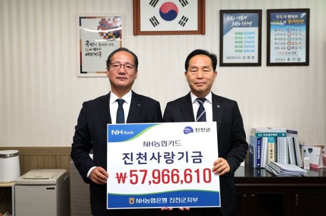 전도성 진천부군수는 “매년 제휴카드 적립기금을 조성해 지역사회에 환원해 주시는 NH농협은행 진천군지부에 깊이 감사드린다”며 “전달받은 기금은 군민 복지 증진과 지역 발전을 위해 투명하고 소중하게 사용하겠다”고 밝혔다.
