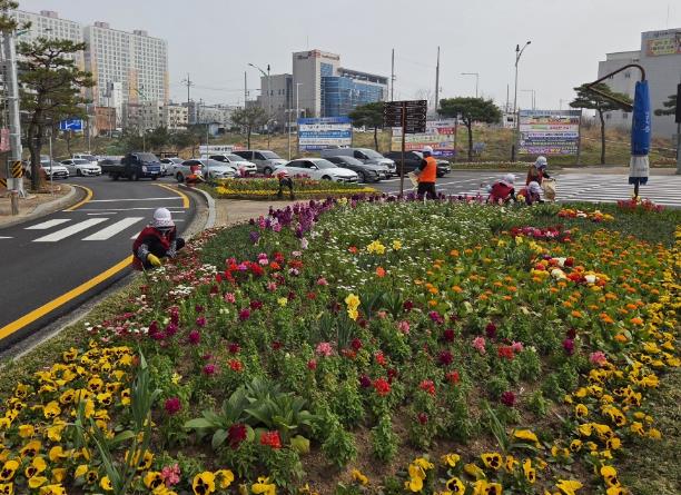 시는 주요 교통섬 6개소와 대형 화분 등에 봄꽃을 배치해 운전자와 보행자 모두가 봄의 정취를 느낄 수 있도록 했다.