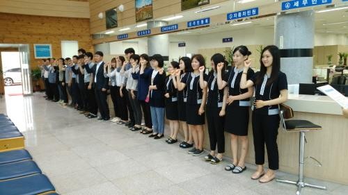 친절 다짐에 참여한 직원들은 "처음에는 어색하고 쑥스러웠지만 일과 시작 전 민원인을 대하는 태도를 연습함으로써 마음가짐이 달라지고 민원담당 공무원들에게 활력이 생겼다"고 전했다.