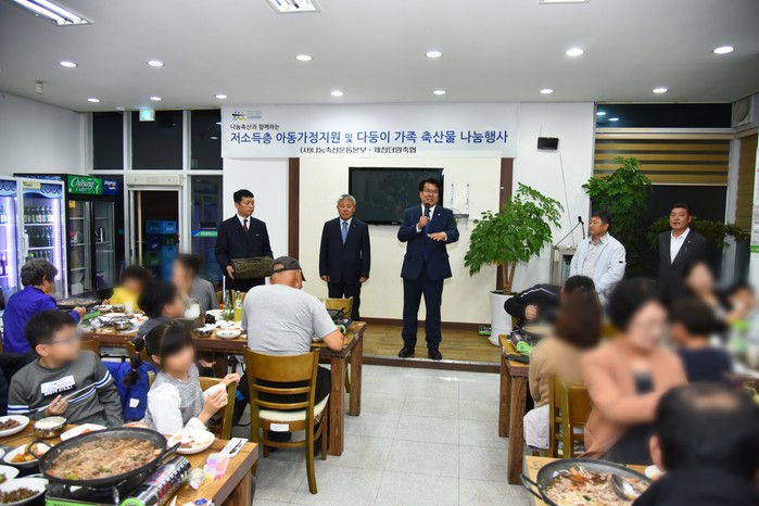 16일 제천시에 따르면 제천단양축산농협(조합장 진항구)이 후원한 이번 행사에는 저소득층 다자녀가족(4자녀 이상) 13가구 68명이 함께했다.