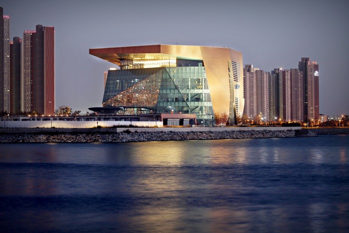 마에스트로가 지휘하는 손 모습에서 영감을 얻어 설계된 독특한 외관으로 인천의 새로운 랜드마크로 기대를 모으고 있다. 송도 서북쪽 바닷가에 위치해 바다를 품은 전망 또한 자랑거리다.