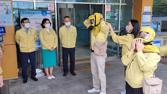 [세계로컬타임즈 민순혜 기자] 대전광역시교육청(교육감 설동호)은 지난 24일 2022 을지연습과 연계해 적 공습 대비 비상 시 국민행동요령 습득 및 안보대비태세 확립을 목표로 민방공 대피훈련을 실시했다고 밝혔다.