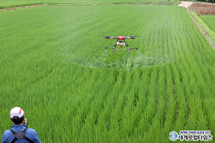 임실군은 농촌 인구의 고령화와 일손 부족을 해결하고자 2015년 최초로 벼농사에 항공방제를 도입했다.