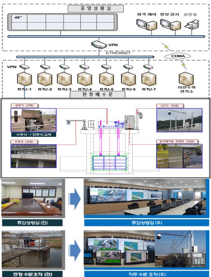 이런 문제점 해결을 위해 구축된 스마트 홍수관리시스템은 올해 선도 사업으로 일부 시설에 대해 추진해 왔으며, 이번 한국판 뉴딜사업에 포함되면서 국가하천 내 모든 수문으로 확대됐다.