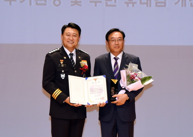 | ▲ 이성인 의정부부시장(오른쪽)이 지난 18일 서울 호암아트홀에서 제2회 대한민국 범죄예방대상 시상식에서 경찰청장으로부터 공공기관 부문 대상 수상을 수상한 후 기념촬영하고 있다.<사진제공=의정부시청> |