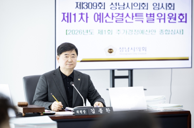 [세계로컬타임즈] 성남시의회 국민의힘 김종환 의원(판교·백현·운중·대장동, 예산결산특별위원장)은 제309회 성남시의회 임시회에서 2026년도 제1회 추가경정예산안’이 예산결산특별위원회 심사를 거쳐 통과·의결됐으며, 이는 기정예산 대비 약 2,396억 원(6.08%)이 증액된 총 4조 1,804억 원 규모라고 밝혔다.