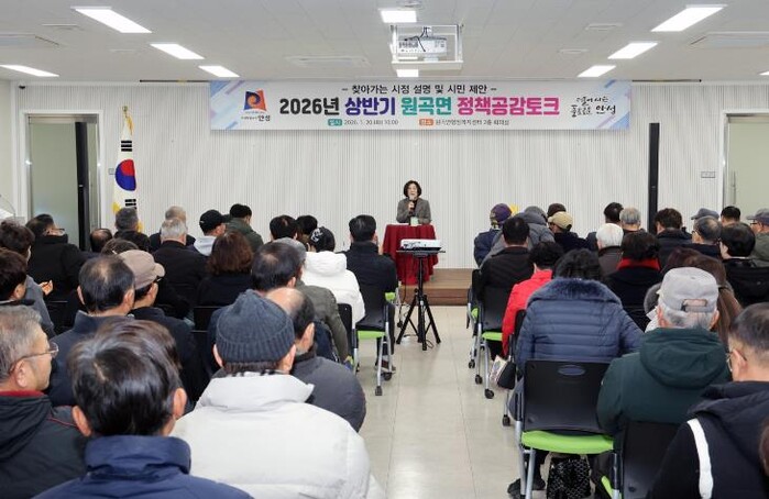 행사에는 기관·사회단체장과 주민 100여 명이 참석했으며, 주민자치센터 색소폰 프로그램 수강생의 식전 공연을 시작으로 시정 설명, 원곡면 현안 발표, 주민 의견 수렴, 지난해 건의사항 검토 결과 안내 순으로 진행됐다.