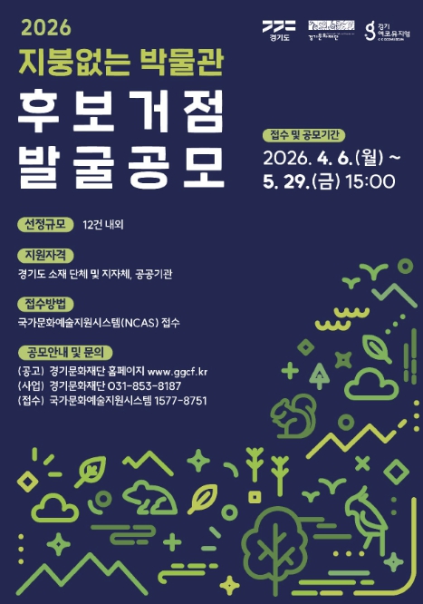 공모 접수는 오는 5월 29일 15시까지 국가문화예술지원시스템(NCAS)을 통해 온라인으로 진행된다. 자세한 공고 내용은 경기문화재단 누리집에서 확인할 수 있다.