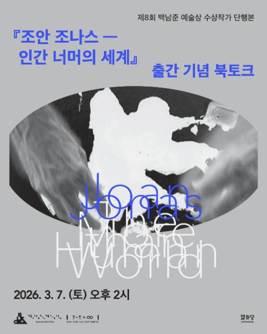 현재 백남준 예술상 수상작가전(2025. 11. 20.- 2026. 3. 29.)으로 열리고 있는 전시와 단행본의 제목 ‘인간 너머의 세계’는 인간과 다른 동물, 식물, 자연 현상의 관계를 포괄하며 확장되어 온 조안 조나스의 생태적 관점을 함축한다. 초기 대표작 '바람(Wind)'(1968)에서 '화산 이야기(Volcano Saga)'(1989), '육지를 떠나서(Moving Off