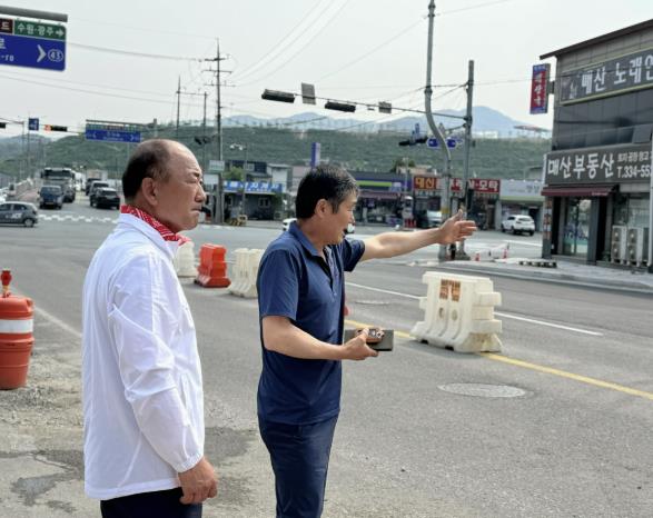 이 의원이 현장을 확인한 결과, 매산2리 주민들은 공사 기간 동안 분진, 소음, 대형 공사차량의 잦은 통행과 적재물 낙하 등으로 장기간 생활 피해를 겪어왔다. 주민들은 도로 개통 이후 환경이 개선될 것이라는 기대 속에 불편을 감내해 왔지만, 정작 도로가 완공되면 마을 진입로에서 좌회전이 전면 차단되는 상황이 발생했다.