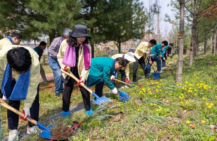 이번 행사는 교육청 구성원들이 직접 삽을 들고 청사 환경을 정비함으로써 기관에 대한 애착을 높이고 탄소중립 실천 의지를 다지기 위해 마련됐다.