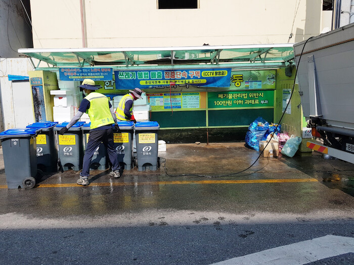 음식물 쓰레기는 매일(일요일 제외) 수거하고 음식물수거용기는 장이 서기 바로 전날 교체하고 청소하도록 했다.