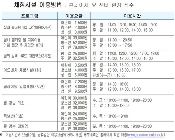 특히, 민간시설에 비해 30% 수준의 저렴한 비용으로 스포츠 클라이밍을 즐길 수 있다.