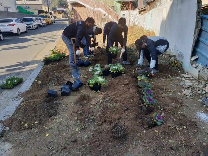 | ▲영암읍이 가로화단 및 화분 겨울팬지, 꽃양배추 등을 심고 있다.(사진=영암군) |