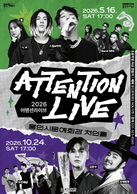 '어텐션 라이브'는 2021년부터 이어져 온 용인문화재단의 라이브 공연 프로그램으로, 다양한 장르의 아티스트가 참여해 시민들의 꾸준한 관심을 받아왔다. 특히 라이브 음악 중심의 공연을 통해 청년층의 공연 관심도를 증가시키고, 지역 공연 관객 저변을 넓히는 것을 목표로 운영되고 있다.