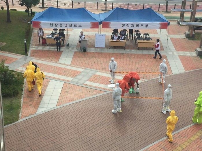 이날 훈련 내용은 보건소 인근에 백색가루를 발견한 직원이 경찰서에 신고함에 따라 보건·경찰·소방에서 각 분야별 초동대응을 실시하는 훈련으로 경찰은 시민통제를, 소방은 환경검체 채취 및 제독을, 보건소는 다중탐지키트 검사, 폭로자 모니터링 등의 역할을 실시했다.