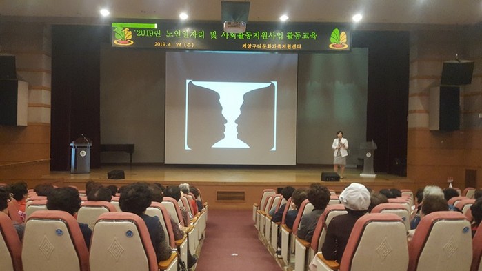 | ▲ 지난 24일 인천 계양구 다문화가족지원센터의 노인일자리사업참여자 대상 교육에서 참석자들이 강의를 듣고 있다.(사진=계양구 제공) |