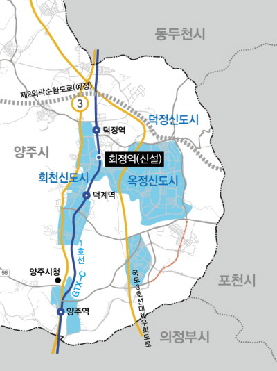 지난해 12월 국토교통부 승인을 받은 ‘회정역’은 양주시 덕계역과 덕정역 사이에 신설하는 역으로서, 양주신도시 회천지구 등 향후 인구 증가에 따른 교통복지의 안정적인 제공을 위한 사업이다.