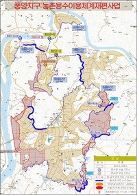 풍양지구 농촌용수이용체계재편사업은 양수장 신설 및 보강을 통한 기존 수리시설 네트워크화해 안정적인 용수를 공급하고 소규모 수리시설 통합과 연계개발 등 용수 공급을 확대하는 사업이다.
