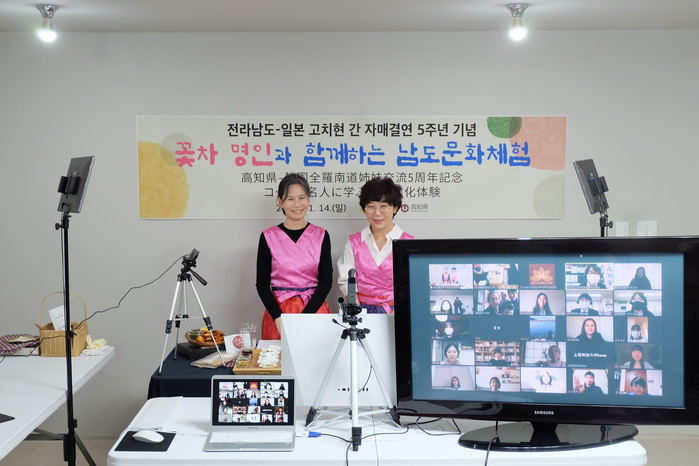 전남도는 고치현과의 자매결연 5주년 기념 대면행사가 코로나19로 전면 취소됨에 따라 지난 11월 전남관광재단과 협업해 온라인을 활용한 비대면 문화체험 프로그램 ‘꽃차 명인과 함께하는 남도문화체험’을 추진했다.