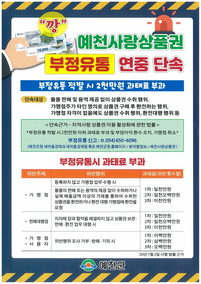 | ▲ 예천군 예천사랑상품권 부정유통 단속 안내. (사진=예천군) |