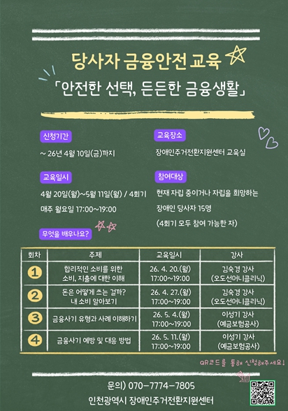 주제는 ‘합리적인 소비를 위한 소비, 지출에 대한 이해’ ‘돈은 어떻게 쓰는 걸까?- 내 소비 알아보기’ ‘급융사기 유형과 사례 이해하기’ ‘금융사기 예방 및 대응 방법’ 등으로 구성한다.