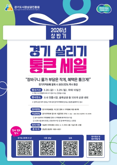 김민철 경상원장은 “경상원은 통큰 세일 회차를 거듭하면서 소비자와 상인 모두의 만족도를 높이기 위해 더 편리한 참여 방식과 다양한 혜택을 지속적으로 확대해 왔다”라며 “올해는 참여 상권이 500여 곳으로 늘어난 만큼 경기도민 모두가 함께 즐기는 지역 소비 축제가 되기를 기대한다”라고 말했다.