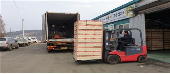 | ▲ 강화군은 코로나19 여파에도 농식품을 해외로 수출하기위해 상차하고있다. (사진=강화군 제공) |
