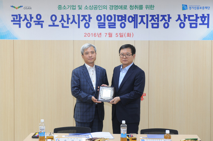[세계로컬신문 최원만 기자] 곽상욱 경기 오산시장이 중소기업과 소상공인의 애로사항을 듣기 위해 5일 경기신용보증재단(이하 경기신보) 일일 명예지점장으로 위촉을 받았다.