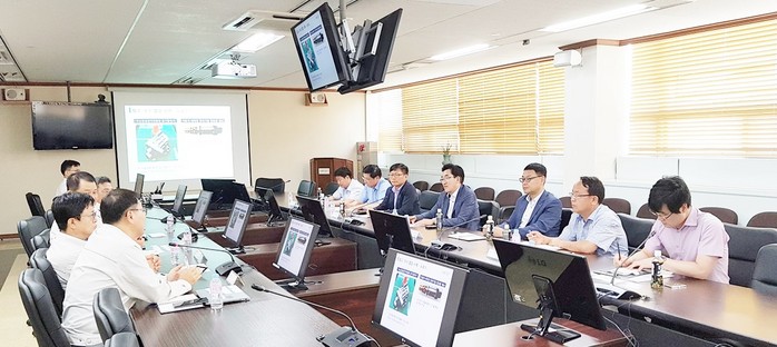 | ▲ 한선희 과학경제국장(오른쪽 줄 가운데) 등 공무원이 지역기업인 한온시스템(주) 방문해 상생발전 방안에 대해 논의하고 있다. |