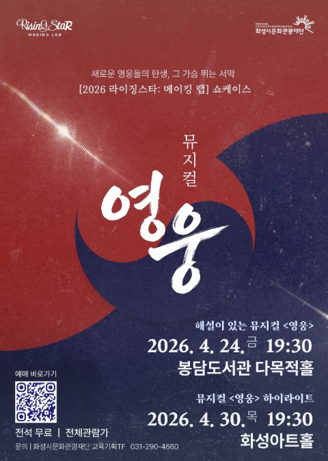 공연은 관객의 접근성과 공간의 특성에 맞춰 두 가지 형태로 진행된다. 먼저 4월 24일 봉담도서관 다목적홀에서는 작품의 역사적 배경과 인물에 대한 해설이 더해져 남녀노소 누구나 쉽게 즐길 수 있는 《해설이 있는 뮤지컬 ‘영웅‘》이 무대에 오른다. 이어 4월 30일( 화성아트홀에서는 주요 장면을 중심으로 한 밀도 높은 구성과 신진 배우들의 폭발적인 에너지를 생생하게 전달할 《뮤지컬 ’영웅‘ 하이라이트》가 펼쳐진다.
