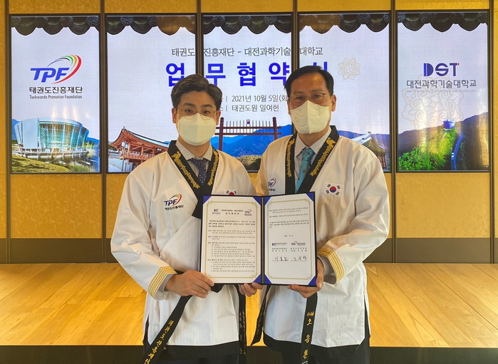 오응환 태권도진흥재단 이사장과 이효인 대전과학기술대학교 총장이 참석 한 업무협약에서 ‘국기 태권도 진흥 및 보급을 위한 협력’, ‘연계 가능한 연수 프로그램 공동 개발 및 지원 협력’ 등에 대한 협약을 체결했다.