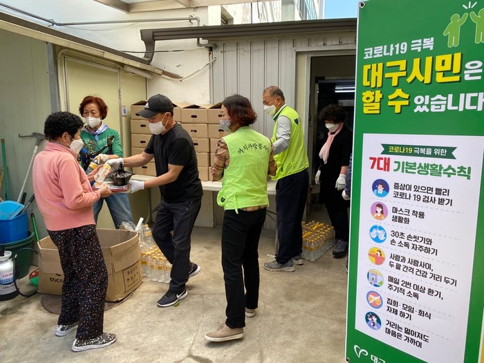 또한, 코로나19 종식을 위해 시민들과 각계 의견을 수렴한 ‘대구시 7대 기본생활수칙’을 무료급식소에 게시하고 홍보물을 배부하는 등 시민들이 생활에서 실천할 수 있도록 적극 홍보하고 있다.