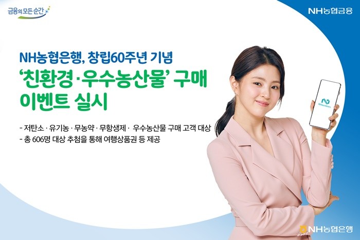 [세계로컬타임즈 김영식 기자] NH농협은행은 창립 60주년을 맞아 친환경·우수농산물 구매 고객을 대상으로 이벤트를 진행한다.