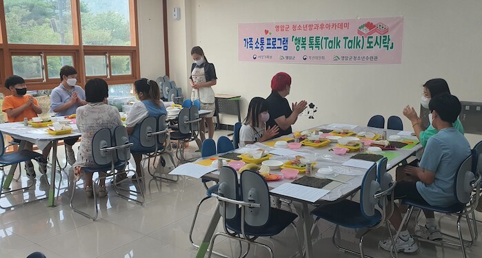 [세계로컬타임즈 강석운 기자] 영암군청소년수련관 방과후아카데미는 지난 23일 방과후아카데미를 이용하는 청소년과 학부모를 대상으로 가족 소통 프로그램 '행복 톡톡(Talk Talk) 도시락' 프로그램을 운영했다.