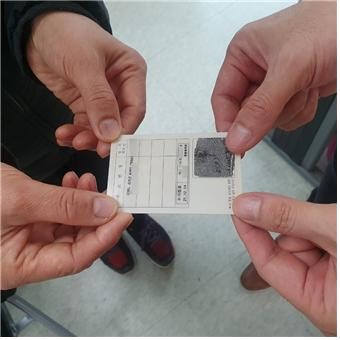 | ▲신분증에 부착한 예방접종스티커 (사진=홍천군) |