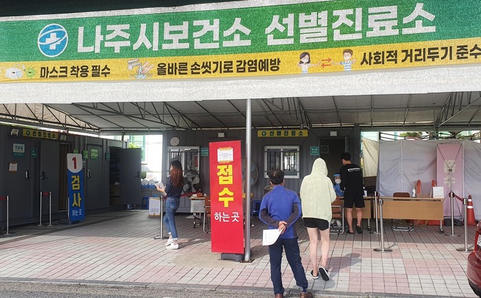 | ▲나주시보건소 한 선별진료소에서 시민들이 검사를 받기 위해 대기하고 있다.(사진=나주시) |