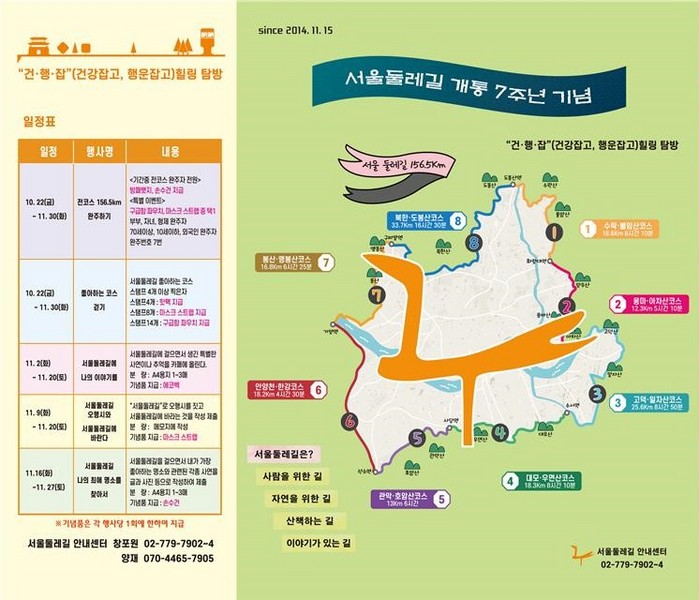 [세계로컬타임즈 이효진 기자] 서울시는 11월 서울둘레길 개통 7주년을 맞아 비대면으로 22일부터 11월 30일까지 ‘건·행·잡(건강잡고 행운잡고)힐링탐방’ 행사를 개최한다.