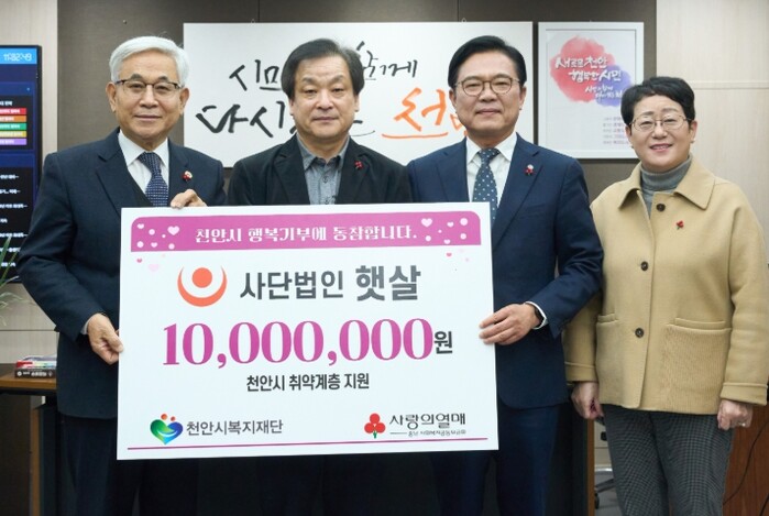 햇살은 지난 2024년부터 천안시복지재단을 통해 후원을 이어오고 있으며, 지난해에는 충남사회복지공동모금회에도 1,000만 원을 후원하는 등 지역사회를 위한 나눔 활동을 꾸준히 실천하고 있다.