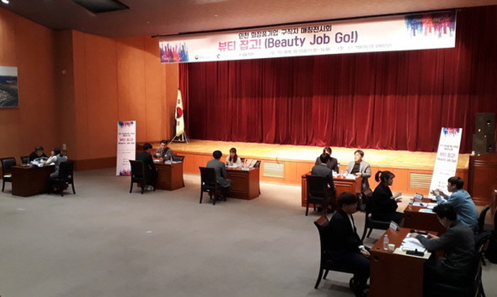 | ▲ 지난해 열린 뷰티 관련 기업체 현장취업연계 행사인 ‘뷰티잡고’에서 참가자들이 면접을 진행하고 있다.(사진=인천시 제공) |