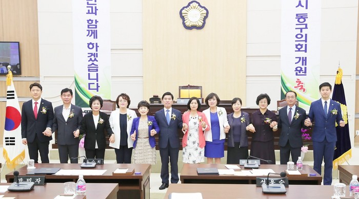 이날 동구의회는 이나영 의장을 비롯해 11명의 의원들과 동구청장, 관계공무원, 의원 가족 및 축하객들이 참석한 가운데 의원선서, 동구의회 윤리강령 낭독, 의장 개원사, 구청장 축사 등으로 개원식을 가졌다.