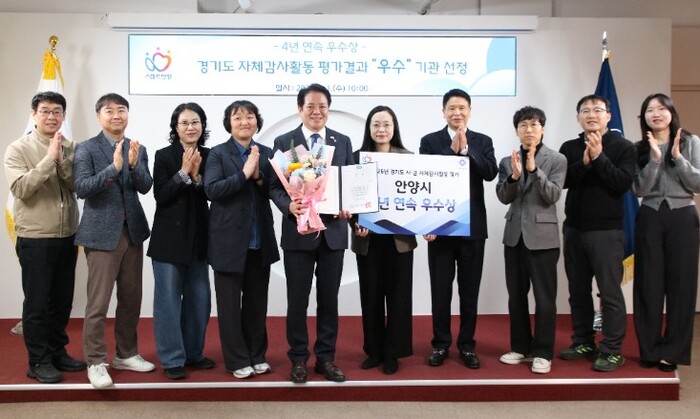 [세계로컬타임즈] 안양시가 ‘2026년 경기도 자체감사활동 평가’에서 4년 연속 우수상을 받았다고 밝혔다.