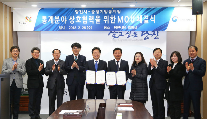 | ▲ 충남 당진시와 충청지방통계청이 지역통계 개발과 협력을 위한 업무협약을 체결하고 기념촬영을 하고 있다. <사진제공=당진시> |