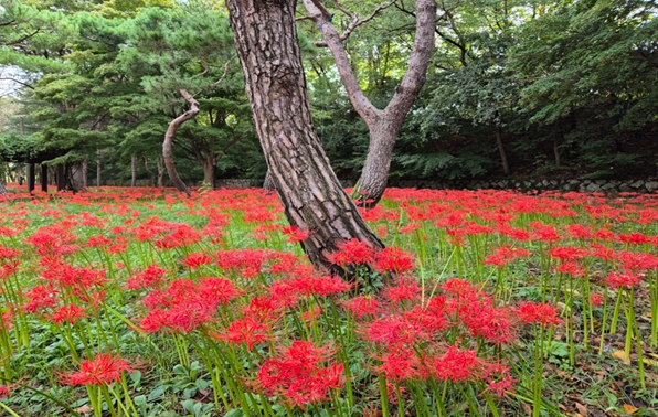 호수 주변 화단에는 꽃무릇이 절정을 이루고, 어울정원에는 코스모스와 백일홍이 활짝 피어 가을 분위기를 한층 높이고 있다.