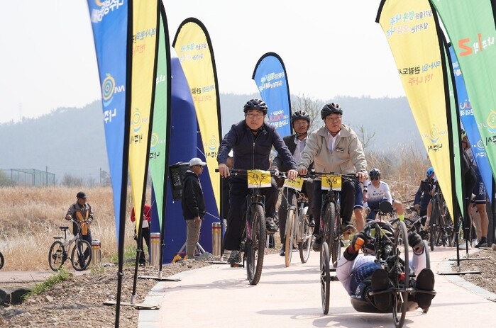 이날 개통식은 사업 경과보고와 기념사, 축사, 기념 촬영에 이어 자전거 시승 행사로 진행됐으며 참석한 시민들이 새롭게 조성된 자전거길을 직접 체험하며 개통의 의미를 더했다.