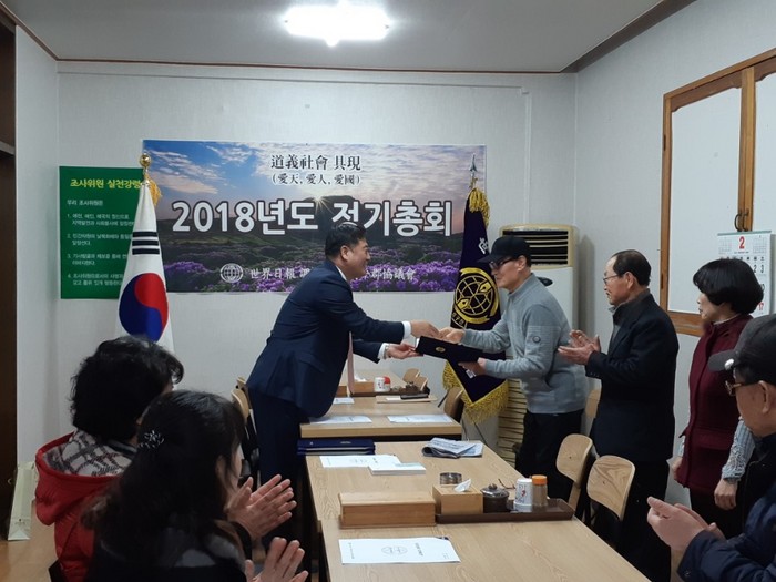 [세계로컬신문 정진욱 조사위원] 지난 13일 개최된 세계일보 조사위원 양평군협의회 정기총회에서 우상규 조사국장이 정진욱 회장에게 임명장을 수여하고 있다.